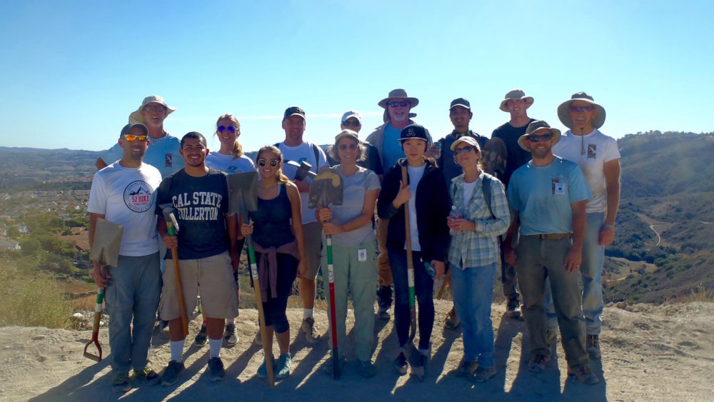 Thanks to all of the volunteers who came out on November 21st to help us on the 5 Oaks Trail in Aliso & Wood Canyons Wilderness Park! We had a good-sized group due to the folks from 52 Hikes and Cal State Fullerton supplementing some of our usual suspects, and we got a lot of great work done, despite the very warm temperatures.